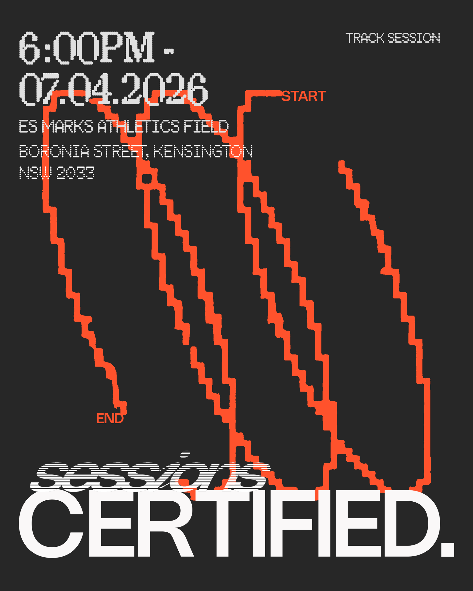 Sessions is a weekly, community-driven track series connecting runners. I developed the logo and visual identity for the series.