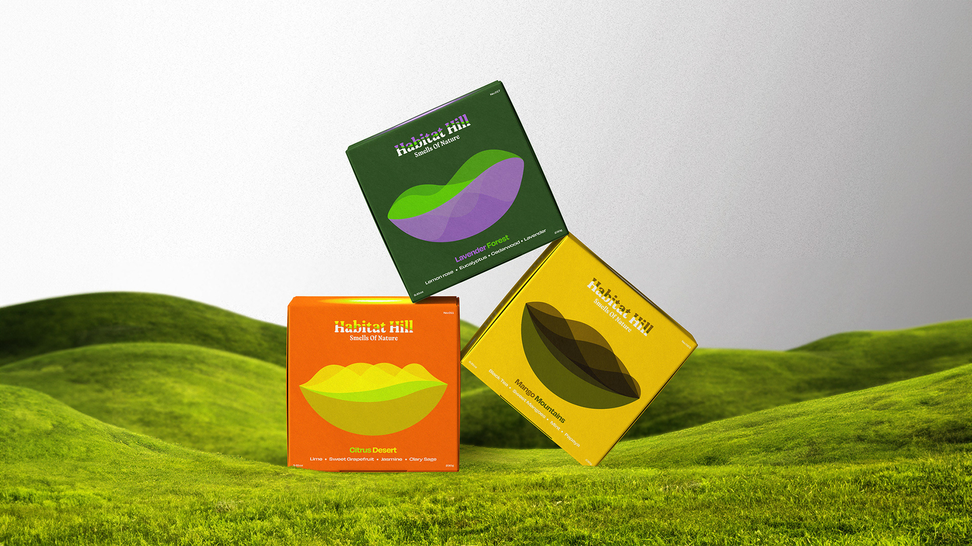 Habitat Hill is a candle company born from a passion for nature and environmental care. As a designer on this project, I reimagined the brand from the ground up, drawing inspiration from organic forms and the calm found in the natural world. The goal was to create a visual identity that reflects Habitat Hill’s mission to bring the soothing light of nature into the home while respecting and protecting the planet.